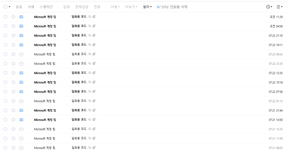 자, 이렇게 불편한 마이크로소프트 일회용 코드 메일 해결방법을 알아보았습니다.