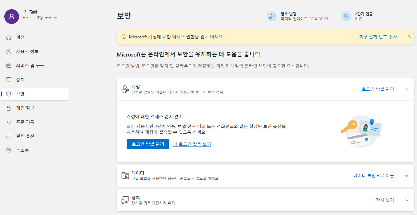 일단, 가장 먼저 확인 할 것은 로그인활동 확인하기! 마이크로소프트 웹사이트에서 확인하실 수 있습니다.