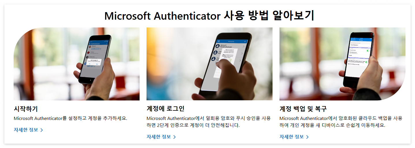 그럼 이렇게 아래와 같은 절차를 거쳐서 'Microsoft Authenticator' 앱을 다운로드해주세요!