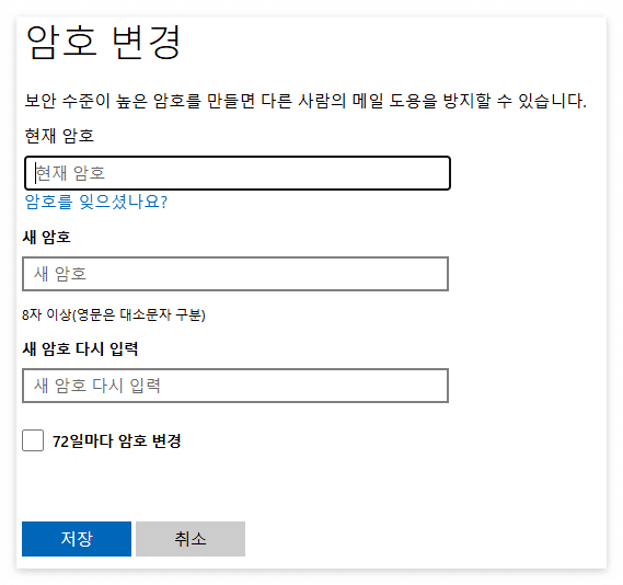 보안이 걱정되기 때문에 제일 먼저 비밀번호를 변경해보겠습니다.