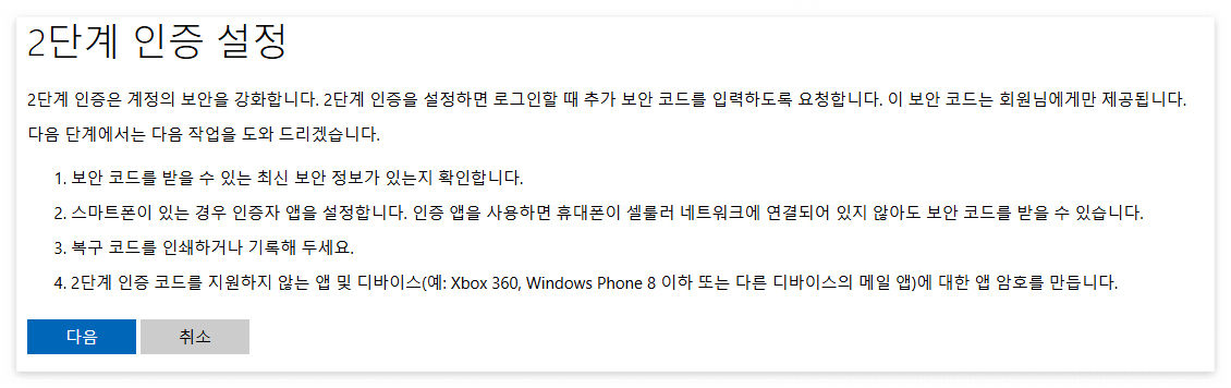 그리고 추가로 2단계 인증까지 해보겠습니다!